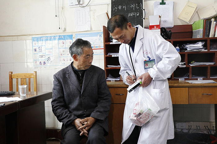 “李老啊,血压高了,要坚持用药,因为你以前有过脑梗,如果不控制好,怕因高血压引起脑血管破裂。”“好好好,都听你的,这些年来,你对我的病情最了解。”交谈中,谢晨辉搀扶着李老来到自己的办公室,并叫李老安心坐坐等等,便去了药房开药。