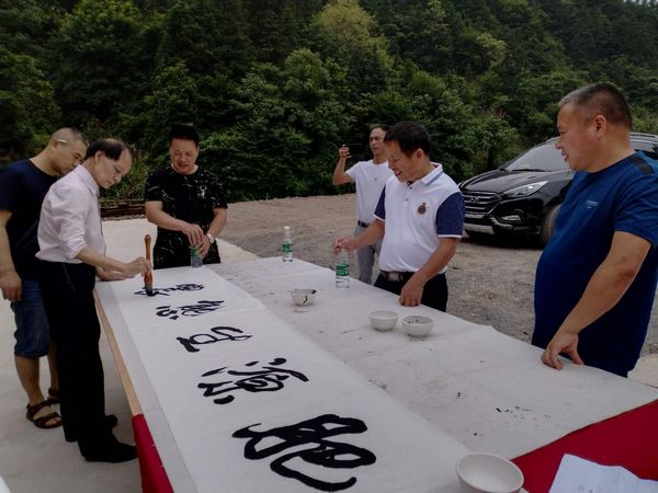 肥源生态农庄常年雇请10多位贫困村民做工,每人每年收入3万元以上,实现了稳定脱贫,2018年底在新田县首届“中国农民丰收节”活动中,被县人民政府授予“优秀休闲农庄”称号。为了让农庄在乡村振兴中发挥更大作用,农庄决定进一步提升文化品味,聘请县内知名书画艺术家现场创作一批适合山庄特点的书法、对联、诗歌和绘画,用特色文化吸引更多客人前来观光休闲,他们的想法得到了骥村镇政府、县老年书画协会等单位的肯定和支持。