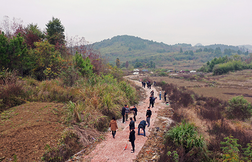 新田新闻网(通讯员 郑时仁 肖苏)11月19日,永州市生态环境局新田分局党支部与长峰村党支部结对共建“我为群众办实事”主题党日活动。为深入学习贯彻党的十九届六中全会精神,永州市生态环境局新田分局党支部全体人员来到长峰村与长峰村党支部为长峰村的长冲自然村与高峰自然村的通村公路基础铺石,有的手持铁锹,有的用锄头在刮,有的用畚箕板车转运,大家干得热火朝天。经过两个多小时的奋战,终于把100多米的一段路基铺好了石子。