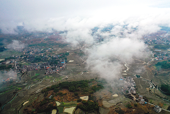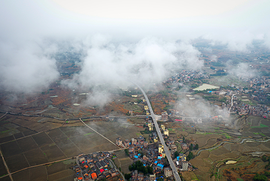 新田新闻网(通讯员 郑时仁)2月9日,雨后三井镇龙凤山周围云雾弥漫,层层云雾萦绕在山村田野公路山峦之间,朦朦胧胧,胜似仙境。雾气浸染过的地方,群山更显美丽,如浓墨淡染的山水画卷。