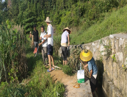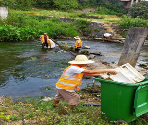 一大早,保洁员、党员们手拿镰刀或操作割草机进行清草除障、清淤工作,此次行动,共清理河道垃圾约5吨、淤泥约3吨,河道两旁的环境得到明显改善,实现了“水清、河畅、岸绿、景美”的目标。