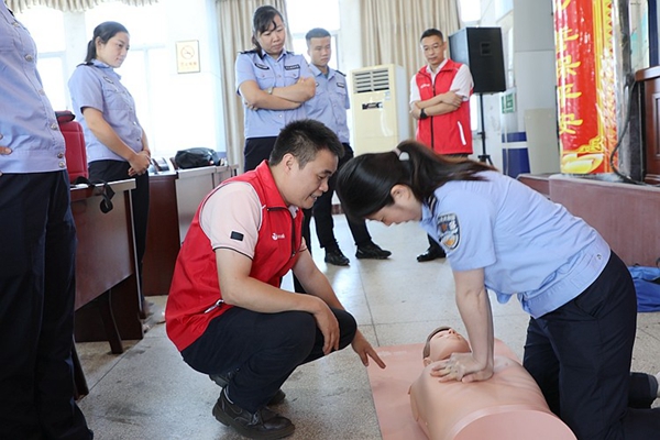 培训课上,警用急救专业培训导师邓高钯详细讲解心肺复苏理论知识、心肺复苏的操作、自动体外除颤器的使用方法、海姆立克急救法、气道异物梗阻的急救方法等方面知识;安排学员开展实操,模拟急救伤病员,悉心指导学员正确实施人工急救、利用自动体外除颤器等设备进行急救,纠正学员不规范的实操动作。进一步提高全体民辅警安全防范意识和救护能力。