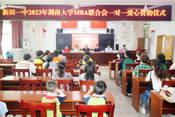 新田新闻网(通讯员 徐声军 叶春霞)6月16日,湖南大学MBA联合会“一对一”爱心助学暨公益课堂进校园活动在新田一中举行。湖南大学工商管理学院领导、湖南大学MBA联合会成员,爱心人士代表、学校领导、受助学生家长和受助学生参加了本次助学活动。