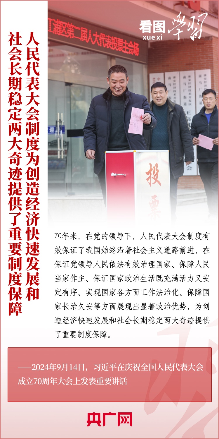 9月14日,习近平总书记出席庆祝全国人民代表大会成立70周年大会并发表重要讲话。总书记在讲话中深刻阐述了人民代表大会制度的显著政治优势,系统总结了新时代人民代表大会制度理论和实践创新重大成果,对新征程上坚持好、完善好、运行好人民代表大会制度作出全面部署、提出明确要求。一起来学习!