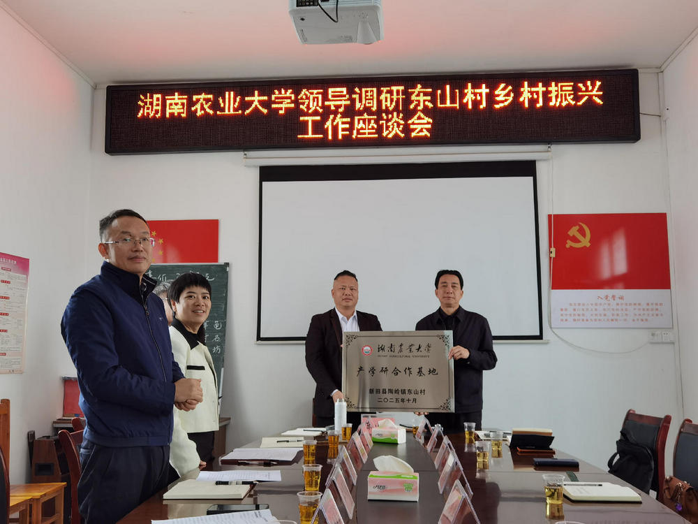 新田新闻网(通讯员 陈晟 刘志军)10月28日,湖南农业大学党委副书记、组织部部长陈光辉一行到新田县陶岭镇东山村,实地调研乡村振兴驻村帮扶工作,深入田间地头指导特色产业发展,查看人居环境改造,并举行“产学研合作基地”授牌仪式。县委常委、纪委书记、监委主任潘海山陪同调研。